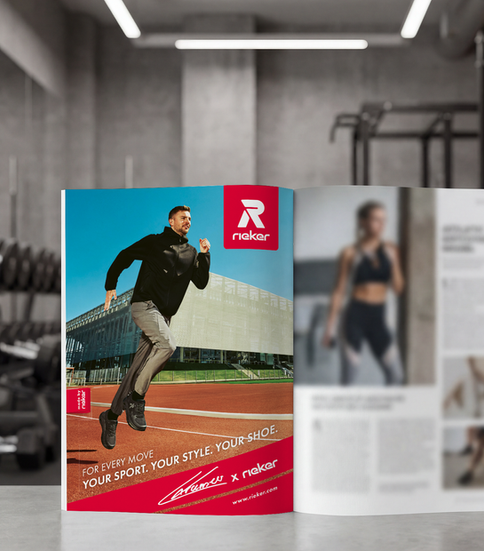In der zweiten Kampagne wird Christoph Kramer als festes Gesicht von Rieker Sport etabliert. Die Bildwelt verbindet urbane Eleganz mit sportlicher Dynamik, Sneaker und Casual-Outfits harmonieren perfekt. Print, TV, Social Media, Streaming, DOOH und POS-Material verstärken die Markenpräsenz.